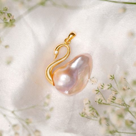 Sparkling Swan Pendant Necklace with Crystal & Pearl Drop
