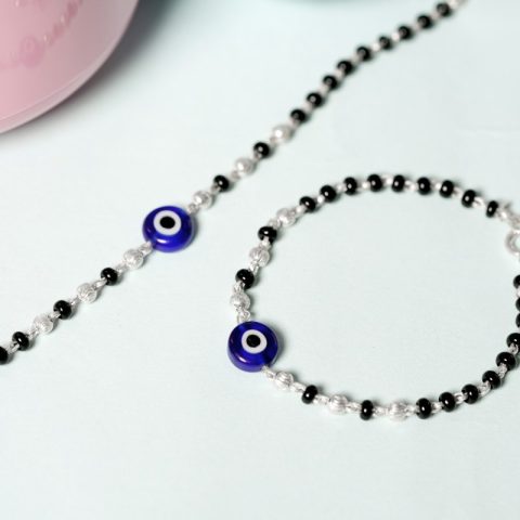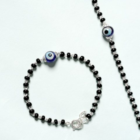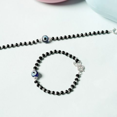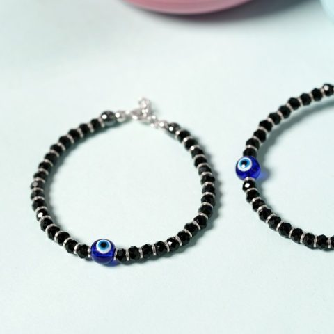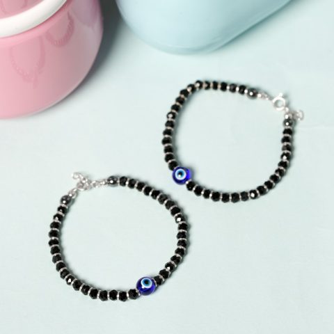 Crystal Handmade Black And Silver 925 Beaded Nazariya Bracelet both Baby Boys and Girls