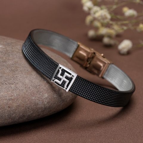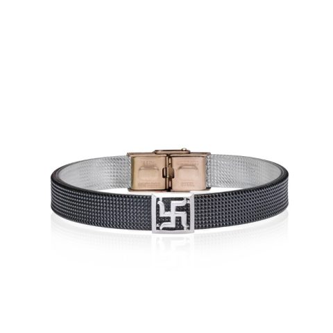Stainless Steel Mesh 925 Silver Swastik Bracelet for Men