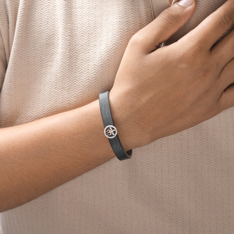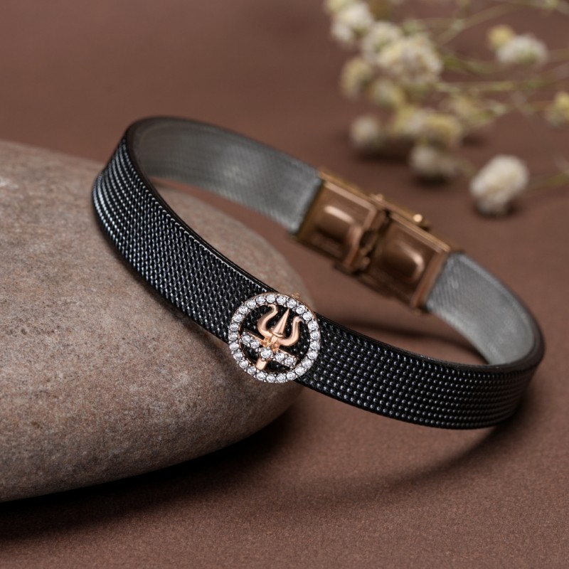 Band Bracelet in Silver 925 Finish with Trishul for Men