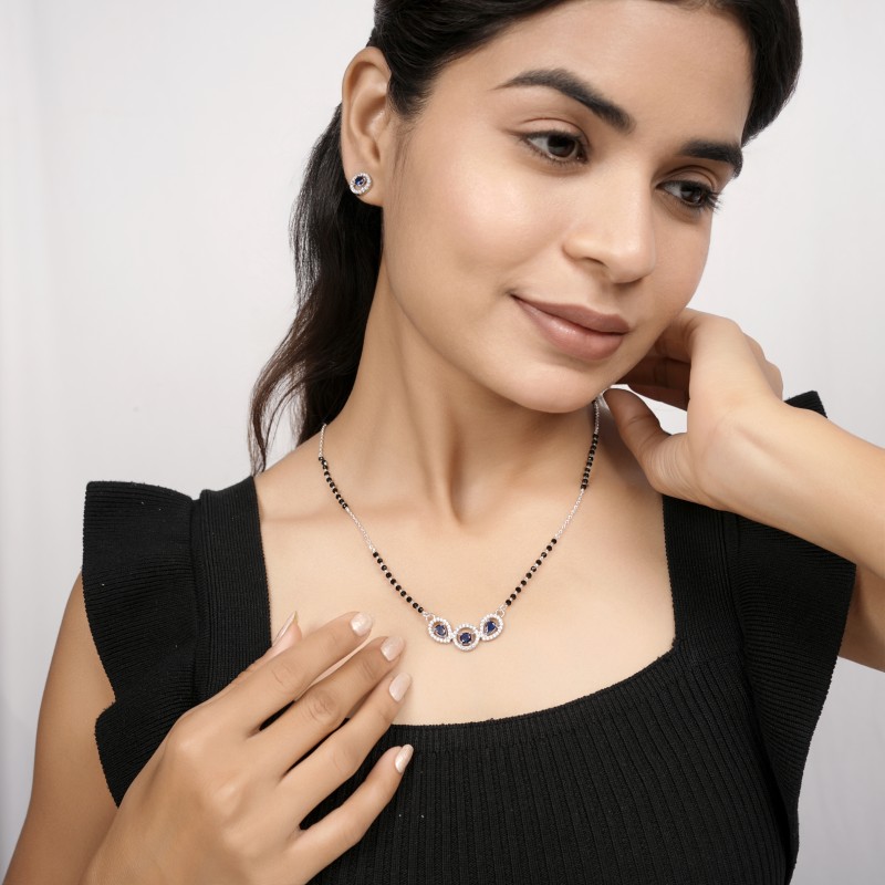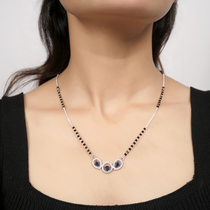 | Product Name | Blue Stone Triple Halo Silver Mangalsutra for Women |