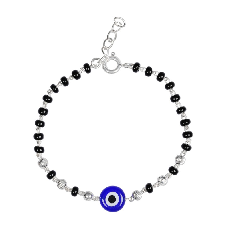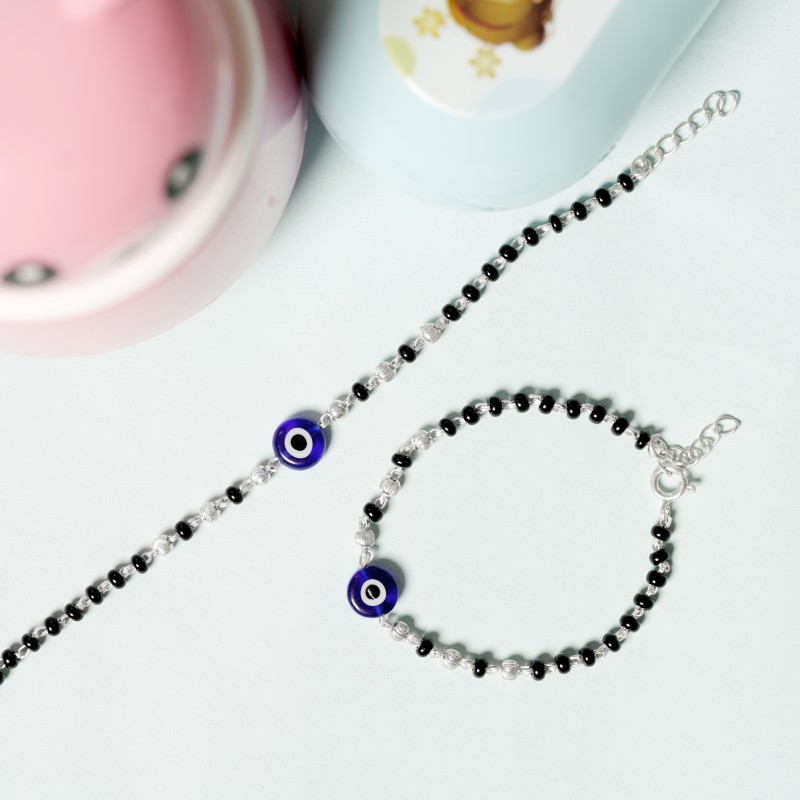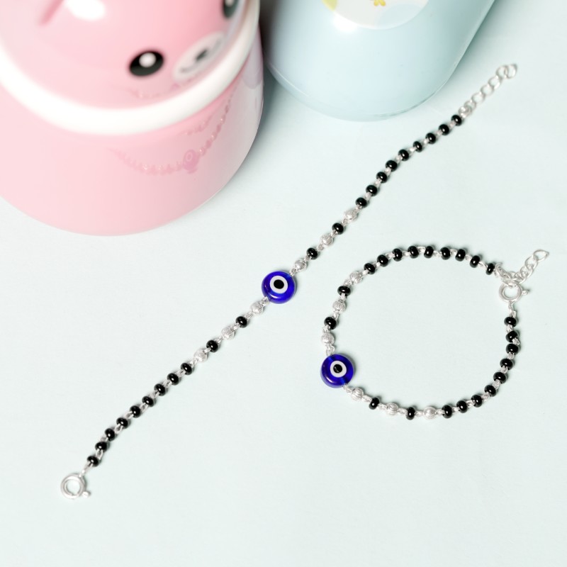 Crystal Handmade Black And Silver 925 Beaded Nazariya Bracelet both Baby Boys and Girls