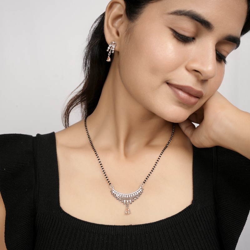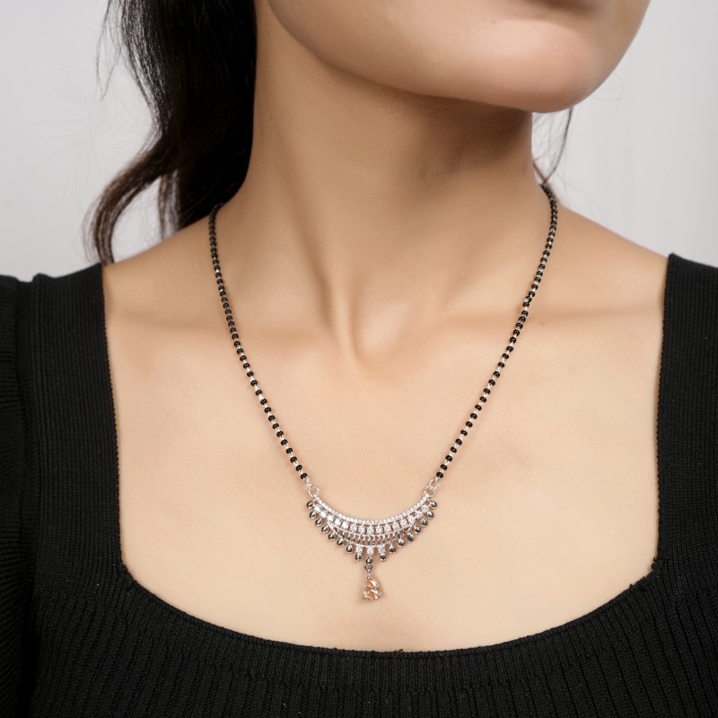 | Product Name | Dual Curve Bar Crystal Silver Mangalsutra for Women |