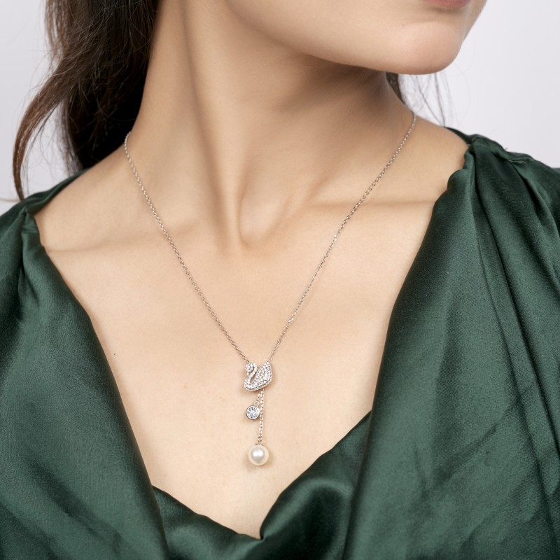 | Product Name | Sparkling Swan Pendant Necklace with Crystal & Pearl Drop |