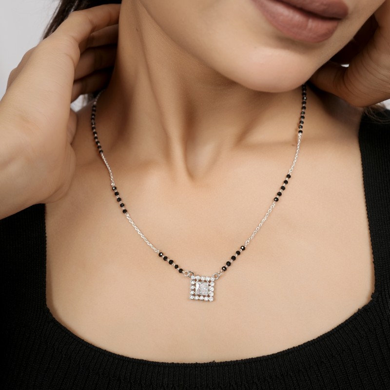 | Product Name | Square Cluster Crystal Silver Mangalsutra for Women |
