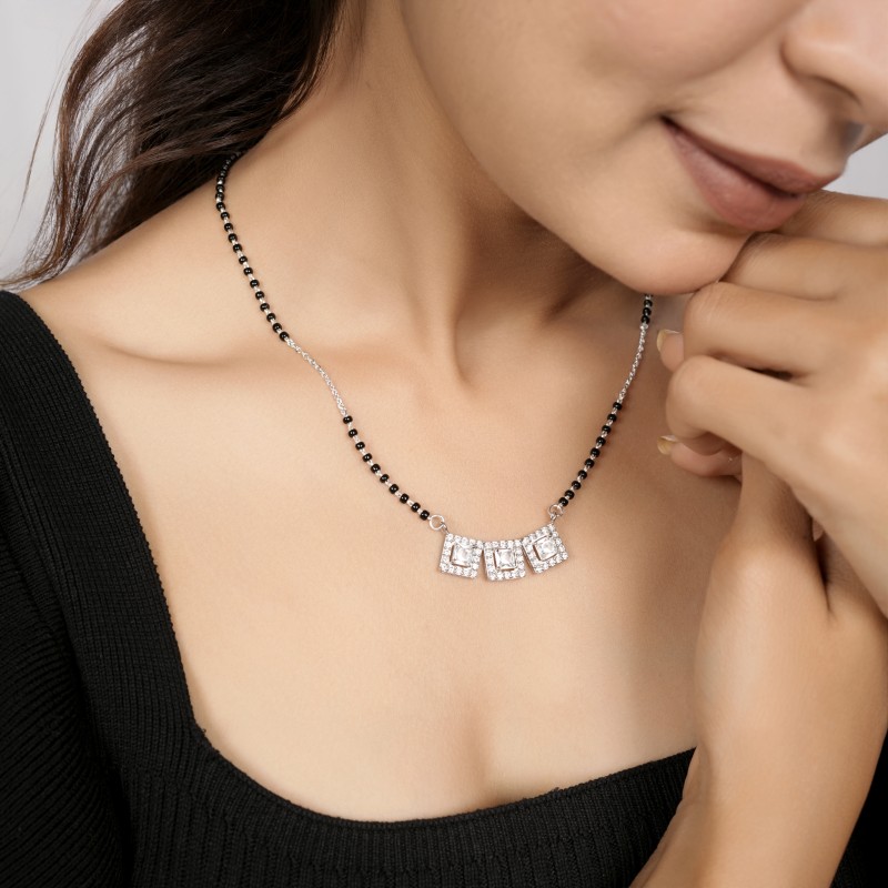 Triple Panel Crystal 925 Silver Mangalsutra for Women