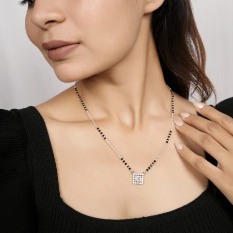 Square Cluster Crystal 925 Silver Mangalsutra for Women